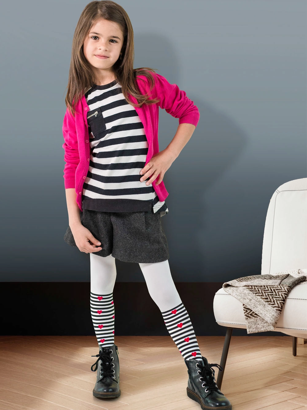 Colanți pentru copii cu dungi cu inimă în microfibră 40 den